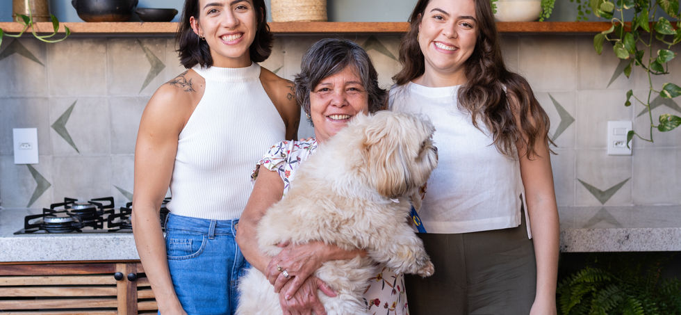 Um sobrado super gostoso, que já tinha passado por uma super reforma. Reorganizamos os espaços, trocando o lugar da área de serviço, criando um banheiro no térreo e um espaço gourmet. A porta camarão piso teto separa a área externa da interna. Na cobertura, o forro de esteira de bambu filtra a luz e deixa super aconchegante.